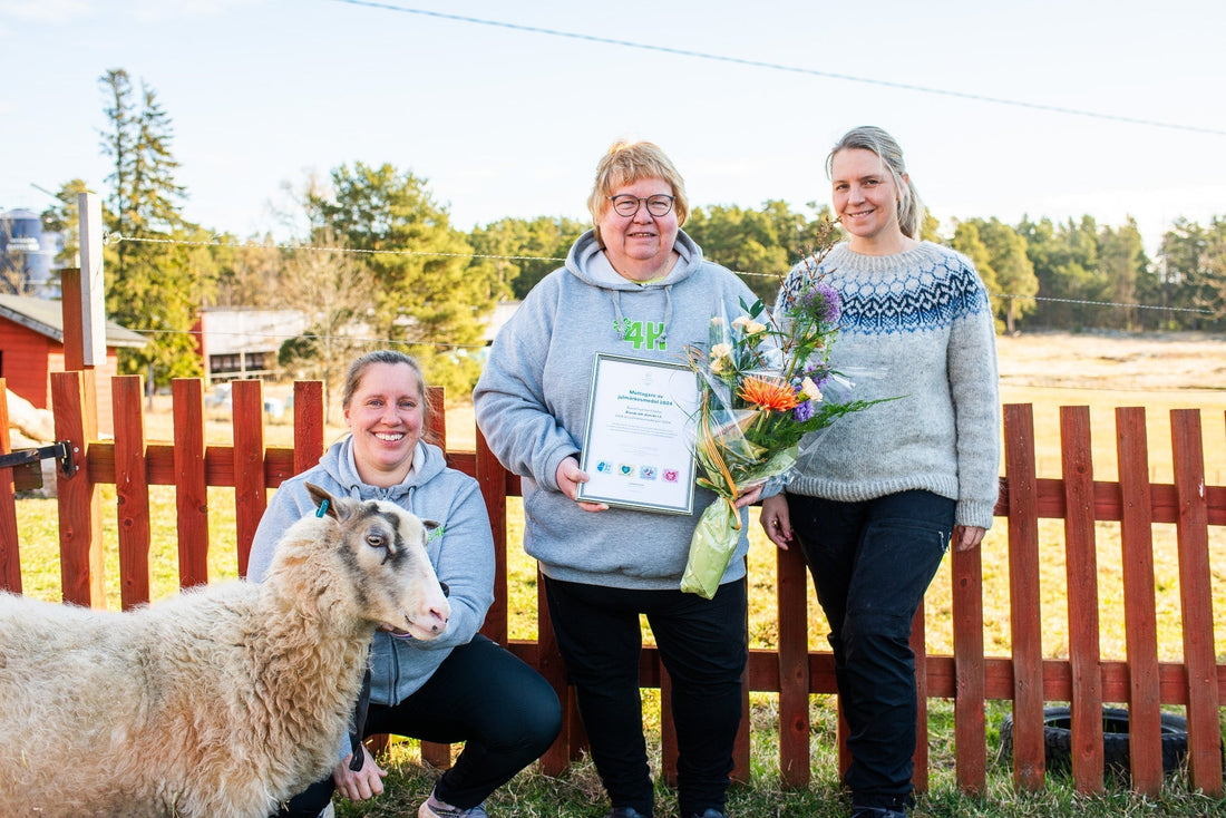 Åland Post überreichte Diplom und Blumen an Marina Ekqvist, Leiterin der Ålands 4-H-Klub (Mitte), zusammen mit Anki Håkans (links) und Malin Hagström (rechts).