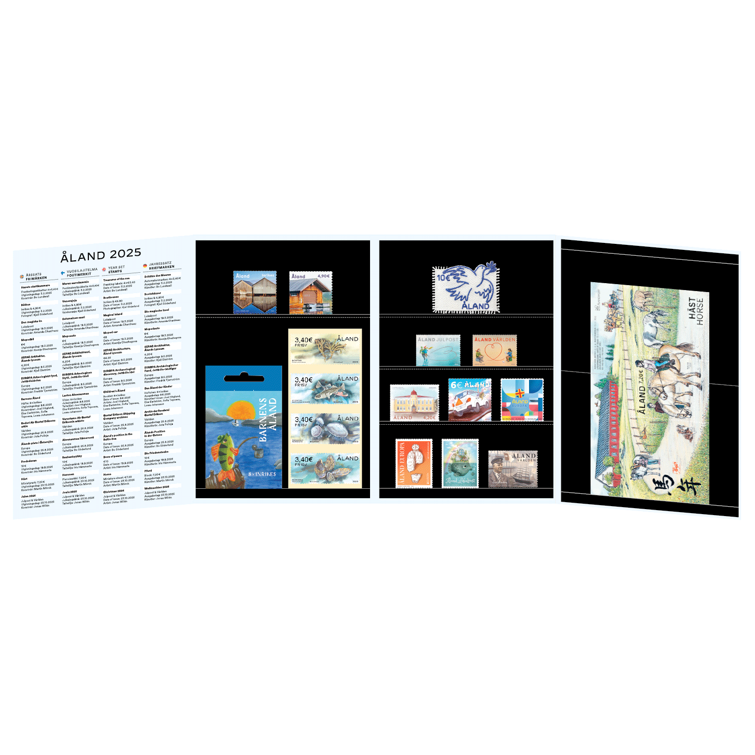 Der Jahressatz ist die richtige Wahl, wenn Sie einen kompletten und hübschen Überblick über das Briefmarkenjahr haben möchten. Mit dem Jahressatz sammeln Sie alle Briefmarkenausgaben der Ålandinseln, inkl. Heftchen, Blocks und der ATM -Serie des Jahres.