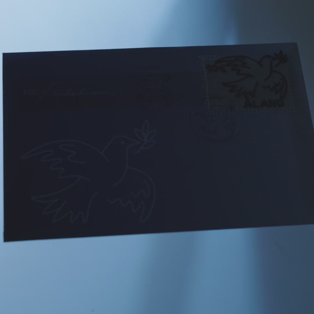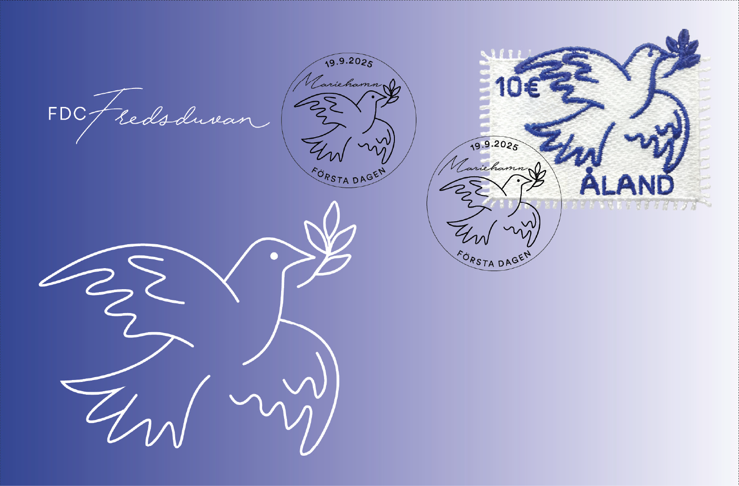 Die Briefmarke mit der Friedenstaube ist die erste gestickte Briefmarke von der Åland Post. Sie ist Teil des internationalen Friedensprojekts Friedenstaube. Åland Post beteiligt sich gemeinsam mit mehr als zehn Postverwaltungen, der UNO und dem Weltpostverein an dieser einzigartigen Sonderausgabe. Das gemeinsame Motiv zeigt eine Taube mit einem Olivenzweig im Schnabel.