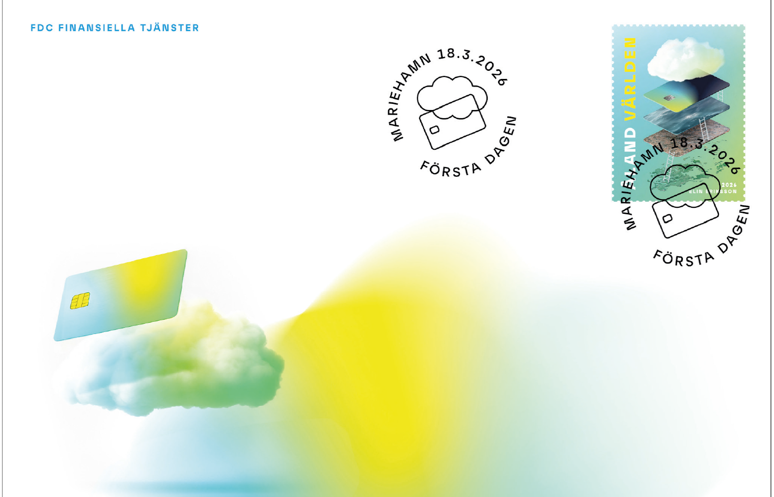 The first day cover and first day cancel show a card in a cloud, symbolizing cloud services.
