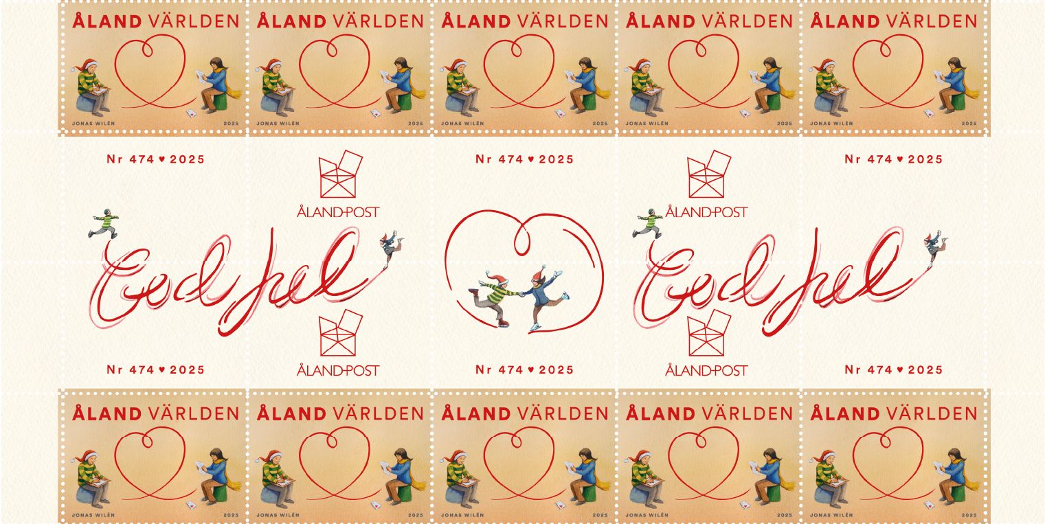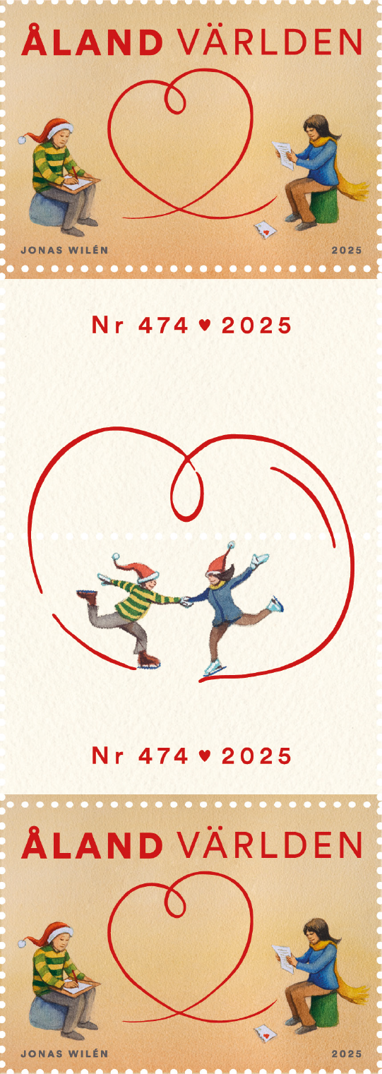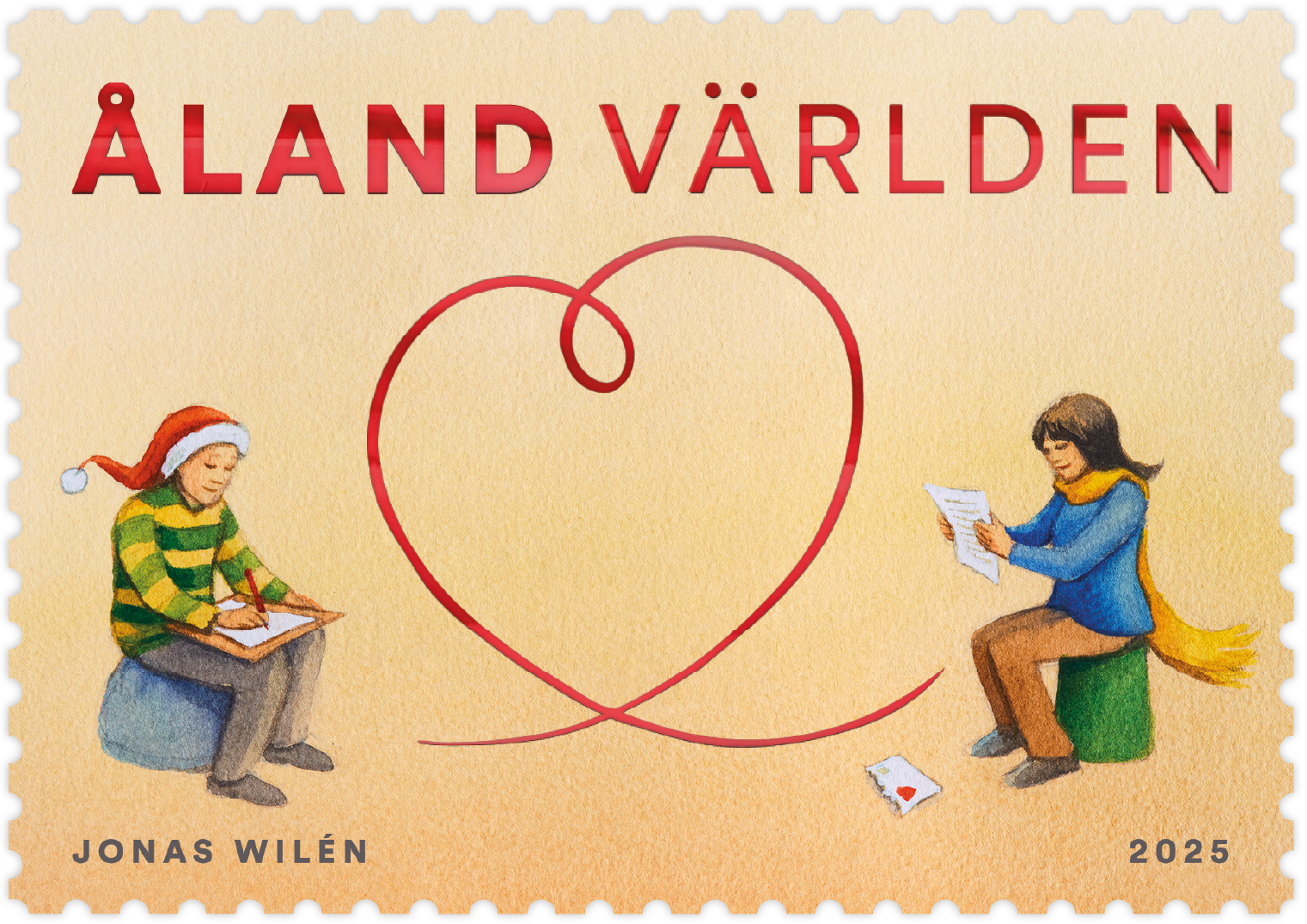 The Christmas stamp illustrates the forming of a heart, when writing a letter to someone you care for.