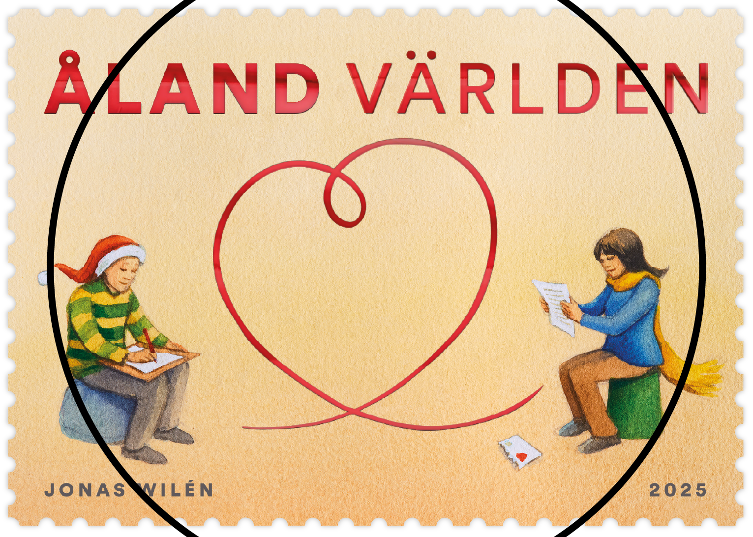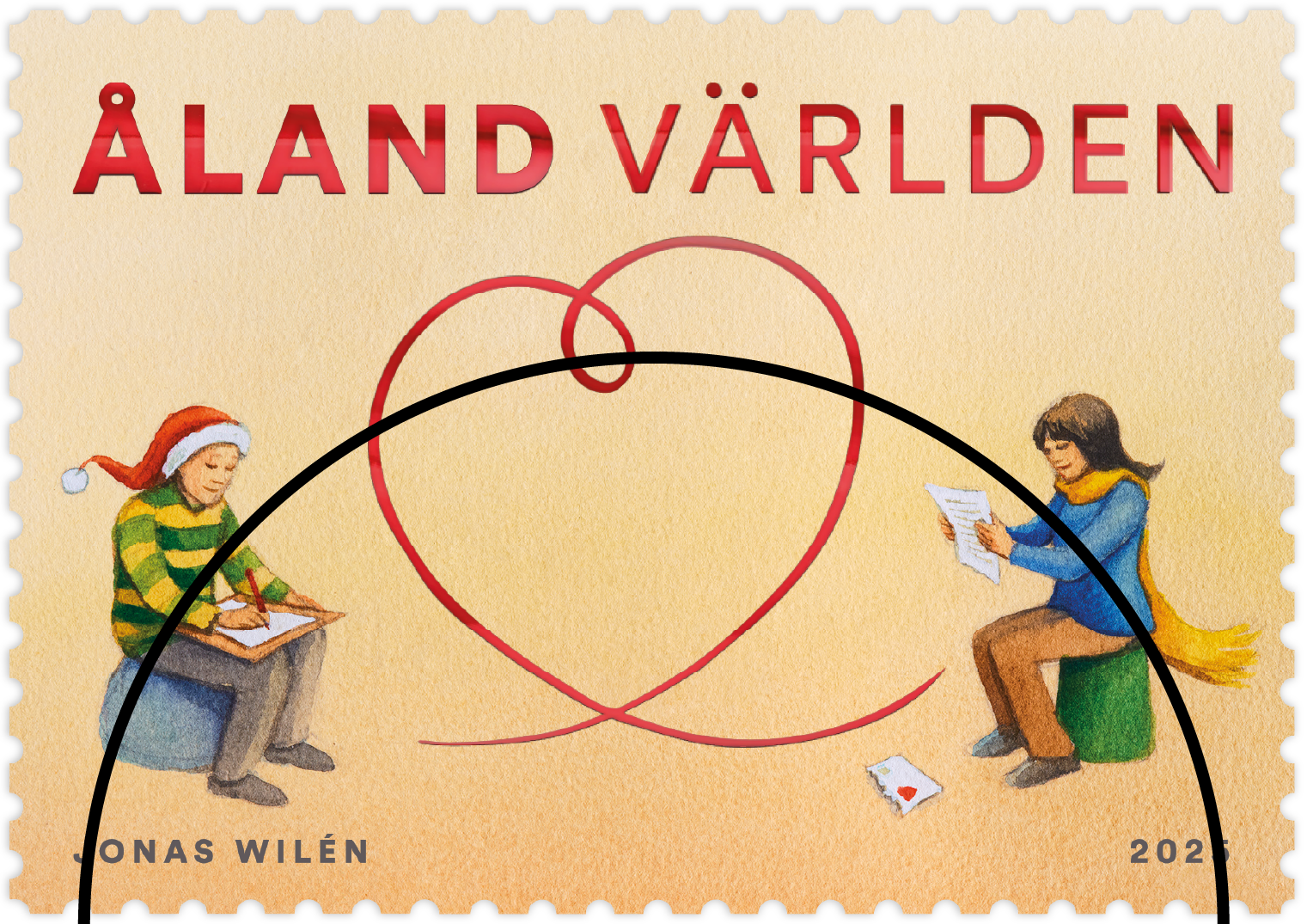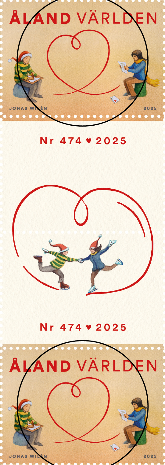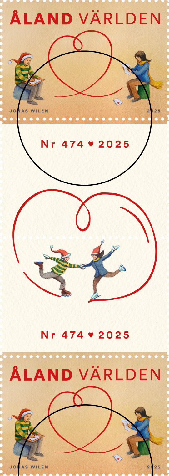The Christmas stamp illustrates the forming of a heart, when writing a letter to someone you care for.