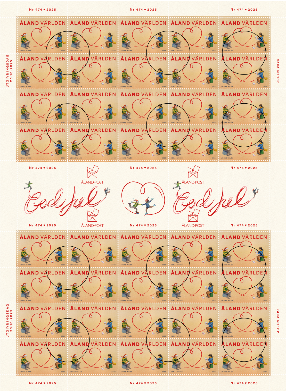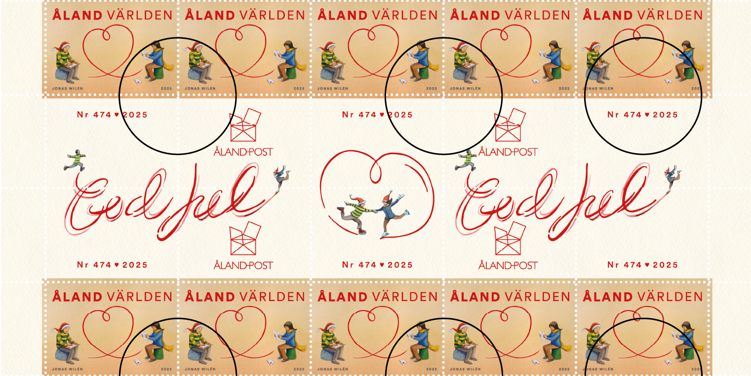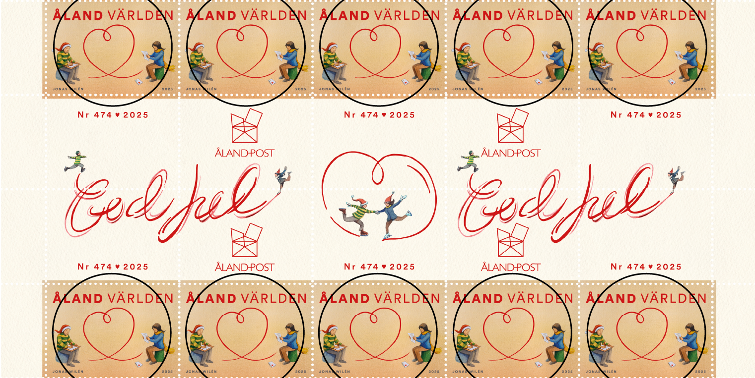 The Christmas stamp illustrates the forming of a heart, when writing a letter to someone you care for.