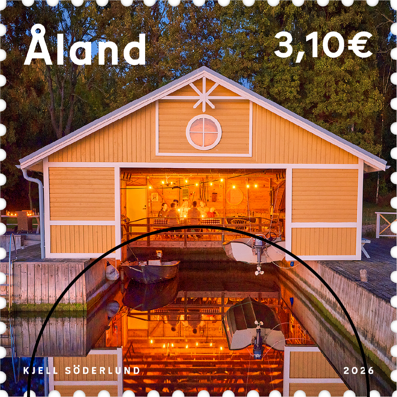 Postimerkissä nähdään kartanonkeltainen venevaja lähellä Lemströmin kanavaa. Se on rakennettu vuonna 2001 ja on kooltaan noin 100 m². Yksi vene roikkuu venevajassa vuoden ympäri, aina valmiina kalastusretkelle. Kesällä se saa seuraa Anytecin alumiiniveneestä. Aikaisesta keväästä myöhään syksyyn venevaja on itsestään selvä kokoontumispaikka Magnus Lundbergin ystäville ja perheelle. Jotta tilaa voi käyttää paremmin hyödyksi, Magnus rakensi nostettavan ja laskettavan terassin. Kun lattia lasketaan alas, venevaja muuttuu juhlatilaksi sekä pitsailtoja että rapujuhlia varten.