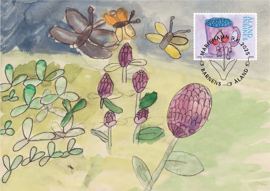 Frimärkshäftet 2025 hyllar barns kreativitet och skaparglädje och är resultatet av ett kreativt samarbete mellan Åland Post Frimärken och Bild- och Formskolan i Mariehamn.