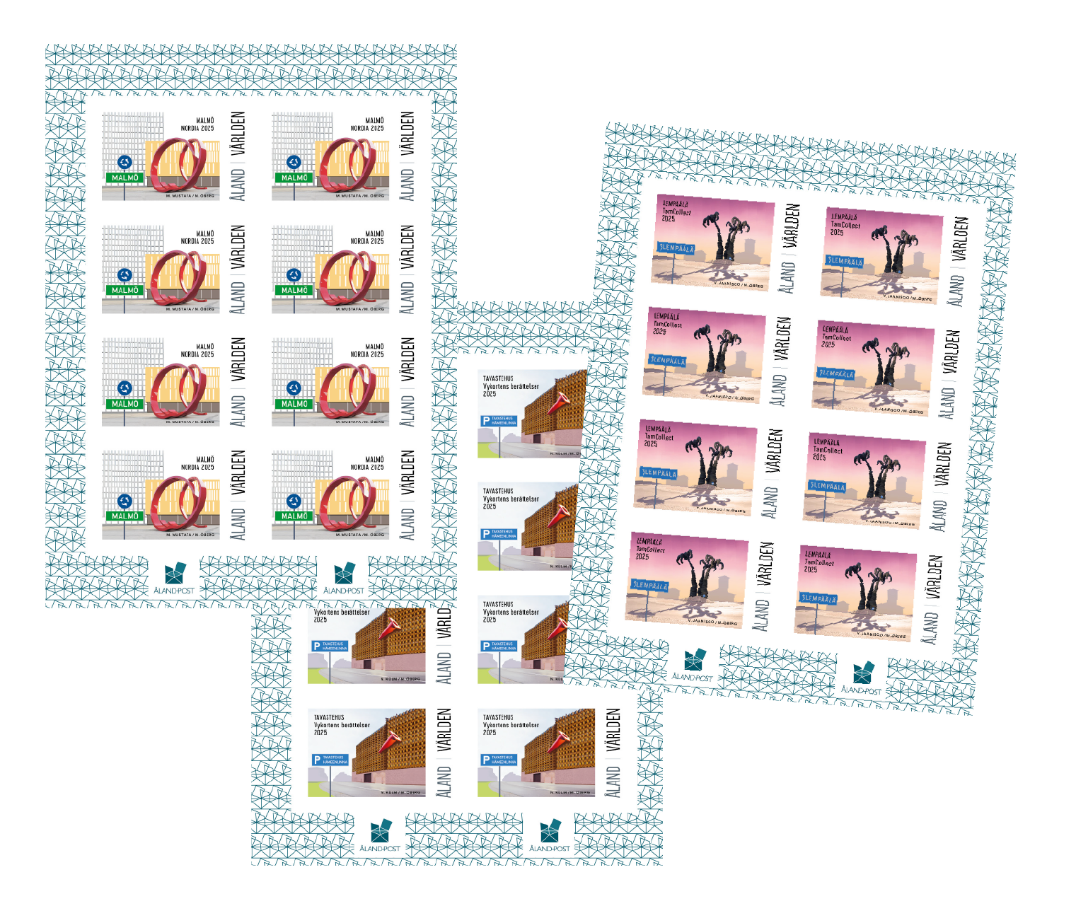 Vägskyltar och offentlig konst är tema för 2025 års utställningsfrimärken. Förpackningen innehåller årets samtliga utställningsminiark.