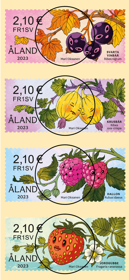 Åländska frimärken stämplas med Mariehamn-postterminalens datumstämpel med dagens datum.