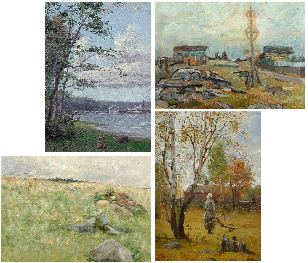 Fyra klassiska målningar av kvinnliga konstnärer som lyfter fram Åland som plats genom konsten. De fyra målningar på helsakskorten ingår i Ålands konstmuseums samlingar.